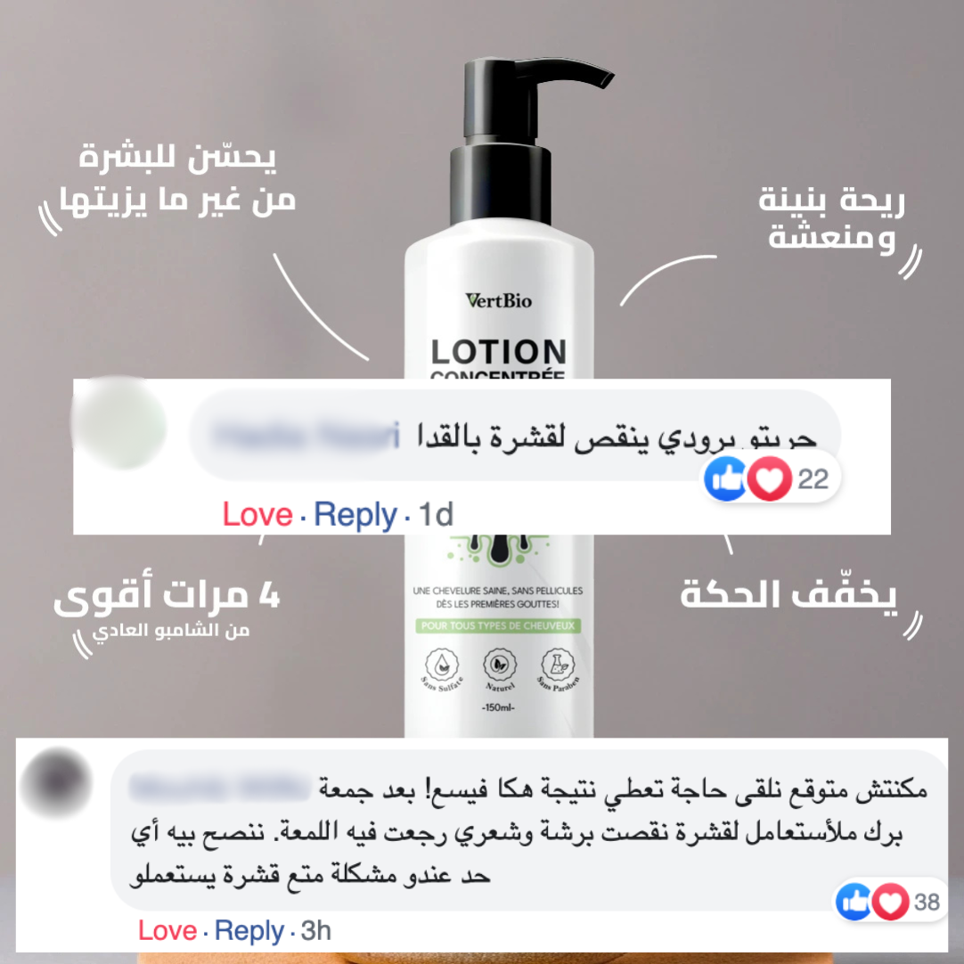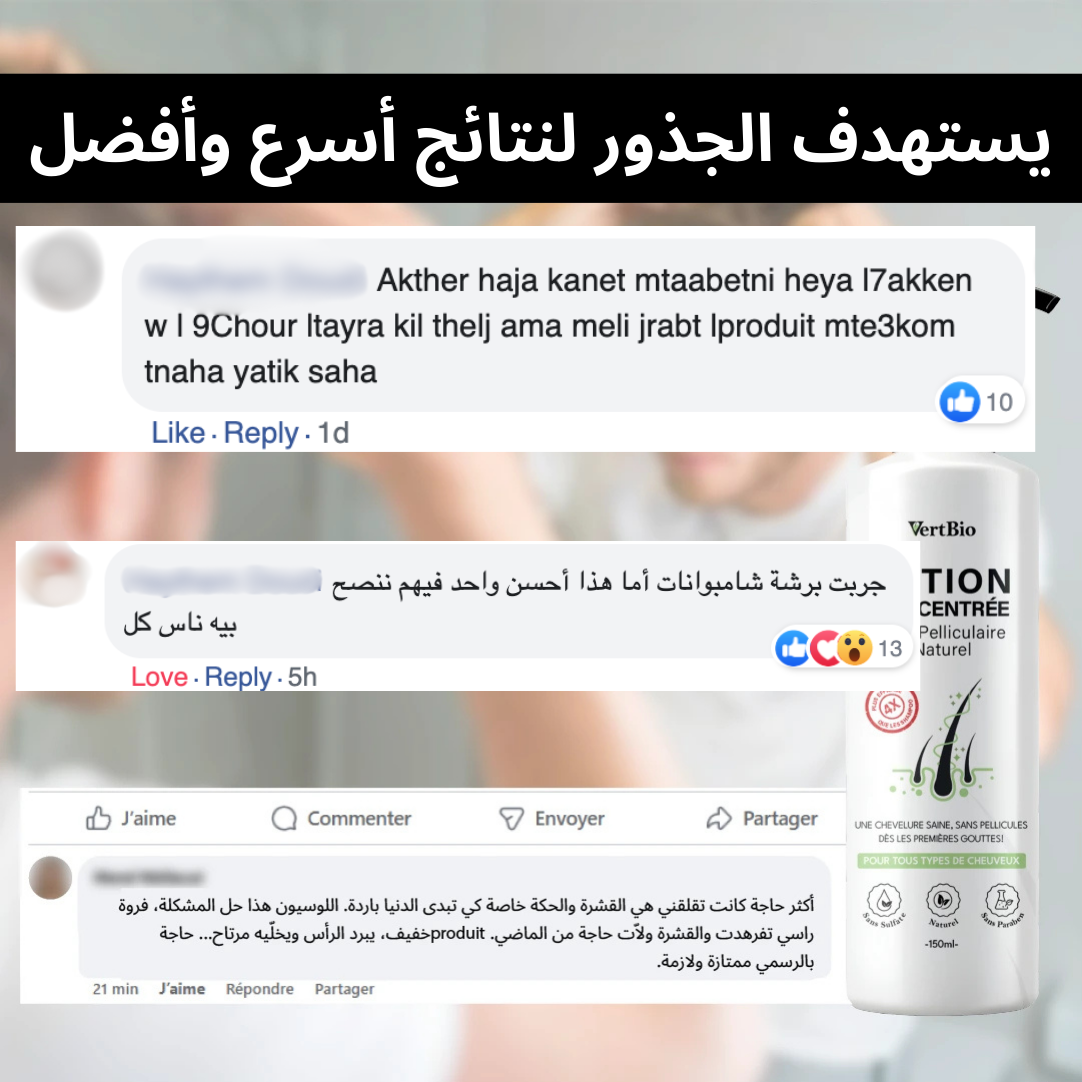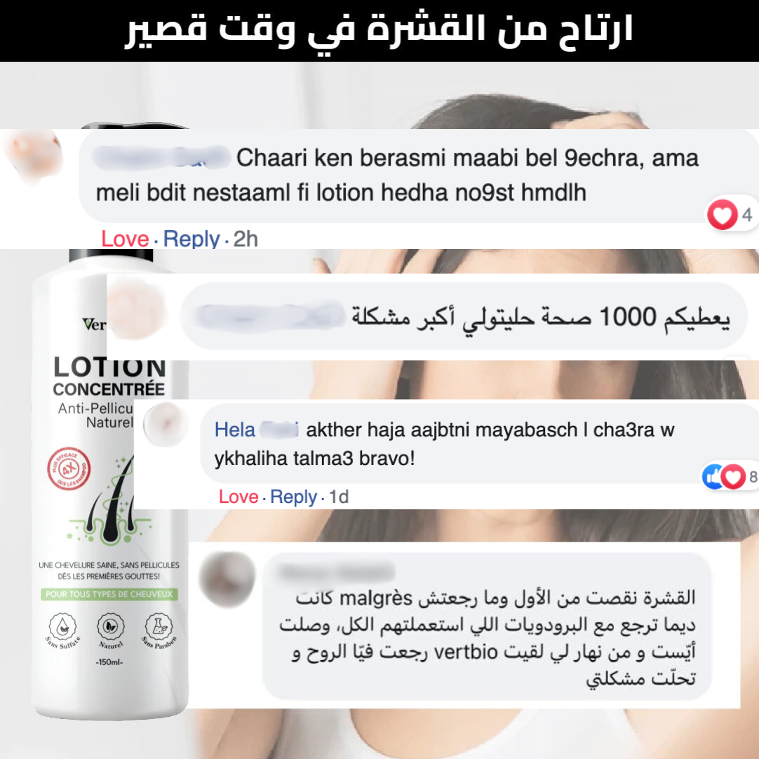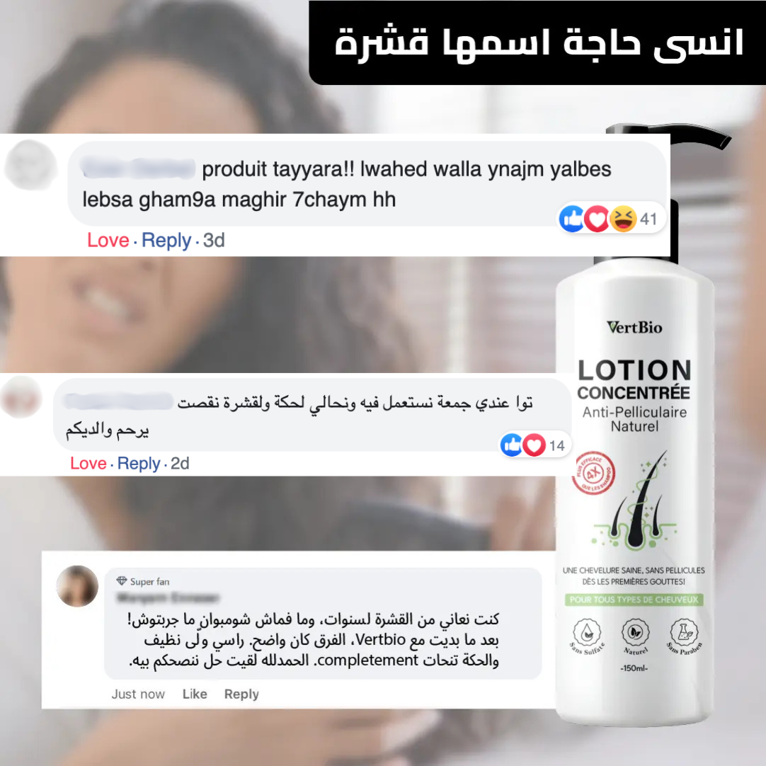 بعد أشهر من البحث والاختبار، كانت النتيجة واضحة: VertBio Lotion Concentrée ليس مجرد لوشن عادي—إنه الحل الأكثر فعالية الذي يجمع بين العلم والطبيعة لعلاج القشرة نهائيًا