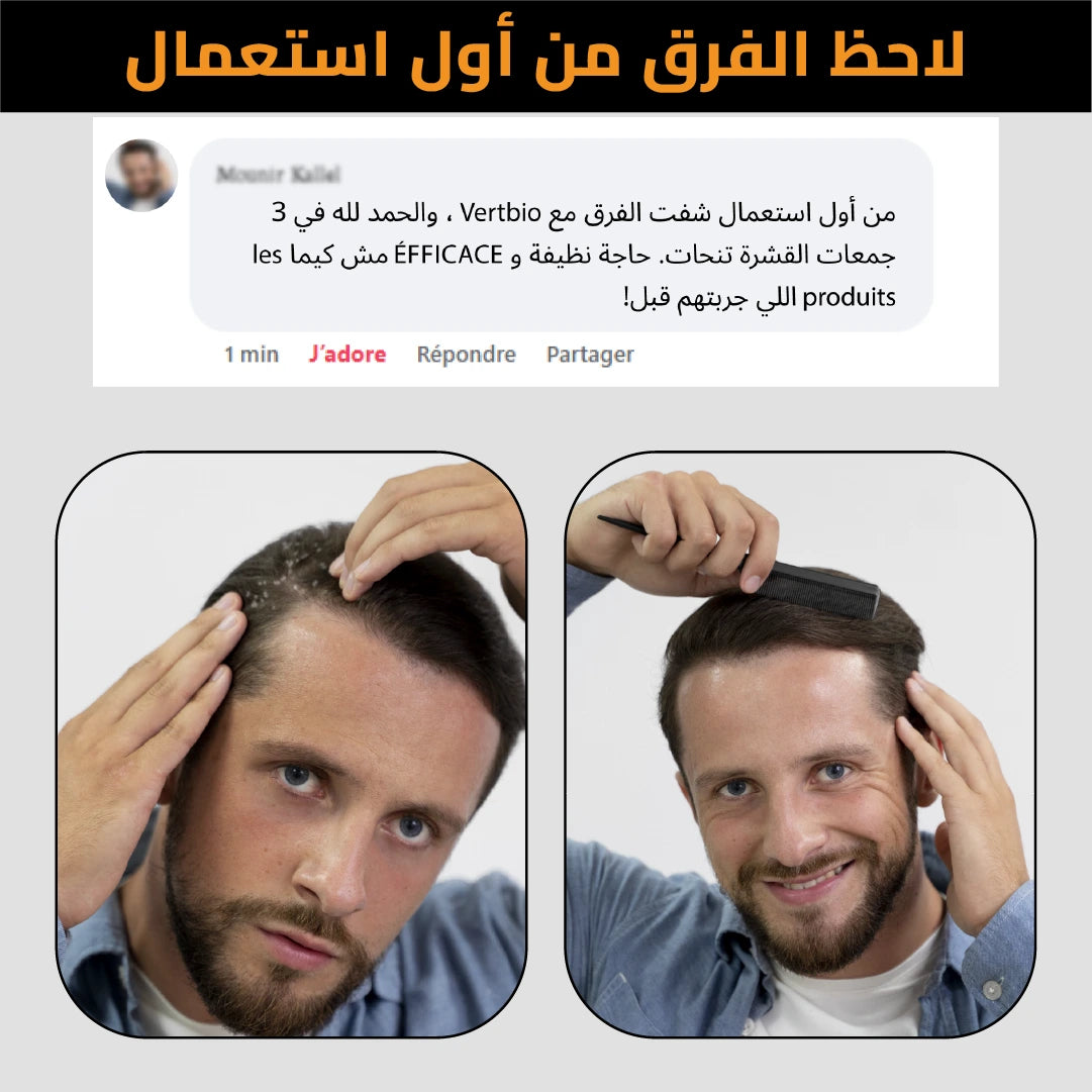من أول استعمال بش تحسّ براحة وبرودة، وانطلاقاً من 3 جماعات بش تبدأ تلاحظ الفرق: قشرة أقل، حكة مُختفية، وشعر صحي. التركيبة الطبيعية متاع VertBio تخدم بفضل مكوناتها الرئيسية: القرنفل اللي يقضي على الفطريات من الجذور، النعناع اللي يهدّي الحكة ويمنح إحساسًا منعشًا، المريمية اللي تُخفّف تهيّج فروة الرأس وتحارب الالتهابات، وإكليل الجبل اللي يقوّي بصيلات الشعر ويُعيد التوازن لفروة رأسك. المكونات هذي تتعاون مع بعضها باش تعالج المشكلة من أساسها وتعطيك نتائج فعّالة تدوم لوقت طويل.